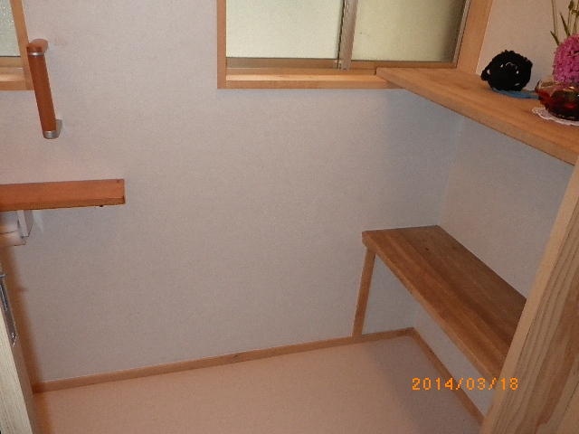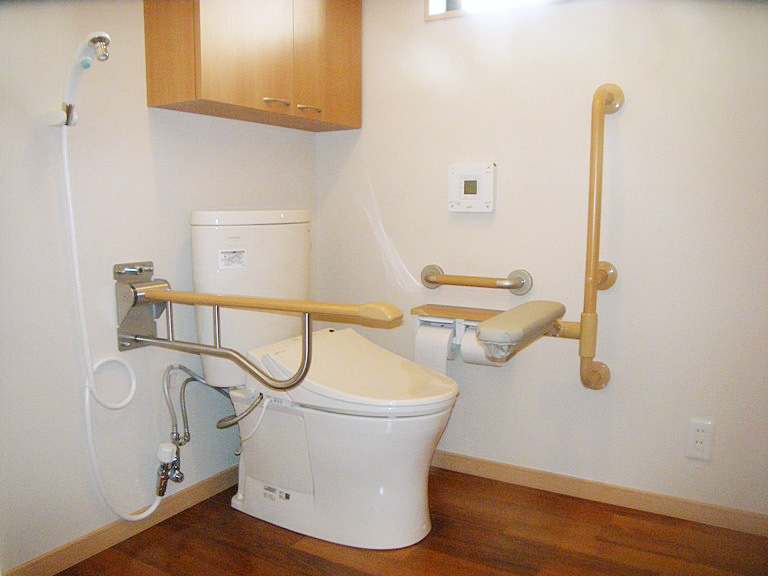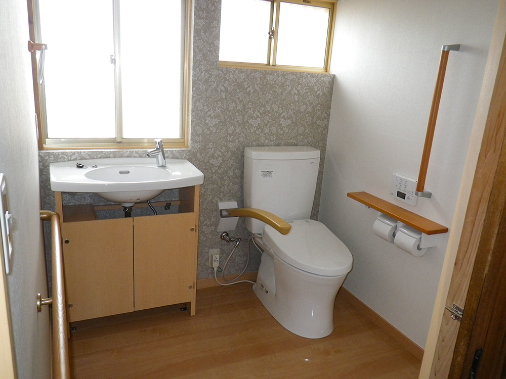 2つあった狭いトイレを、壁を取って1つの部屋にして介護しやすくしました。