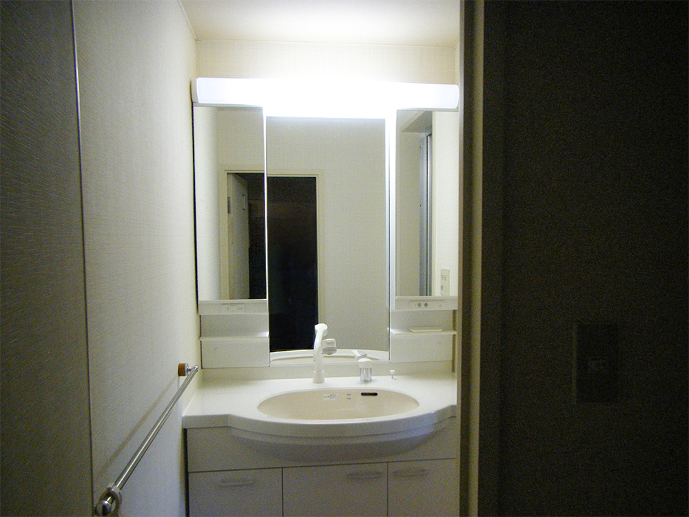 白浜のとあるマンションにお住いのT様宅では、洗面所のスペースを有効活用するため、通常よりちょっと幅広な1mタイプをご用意いたしました。